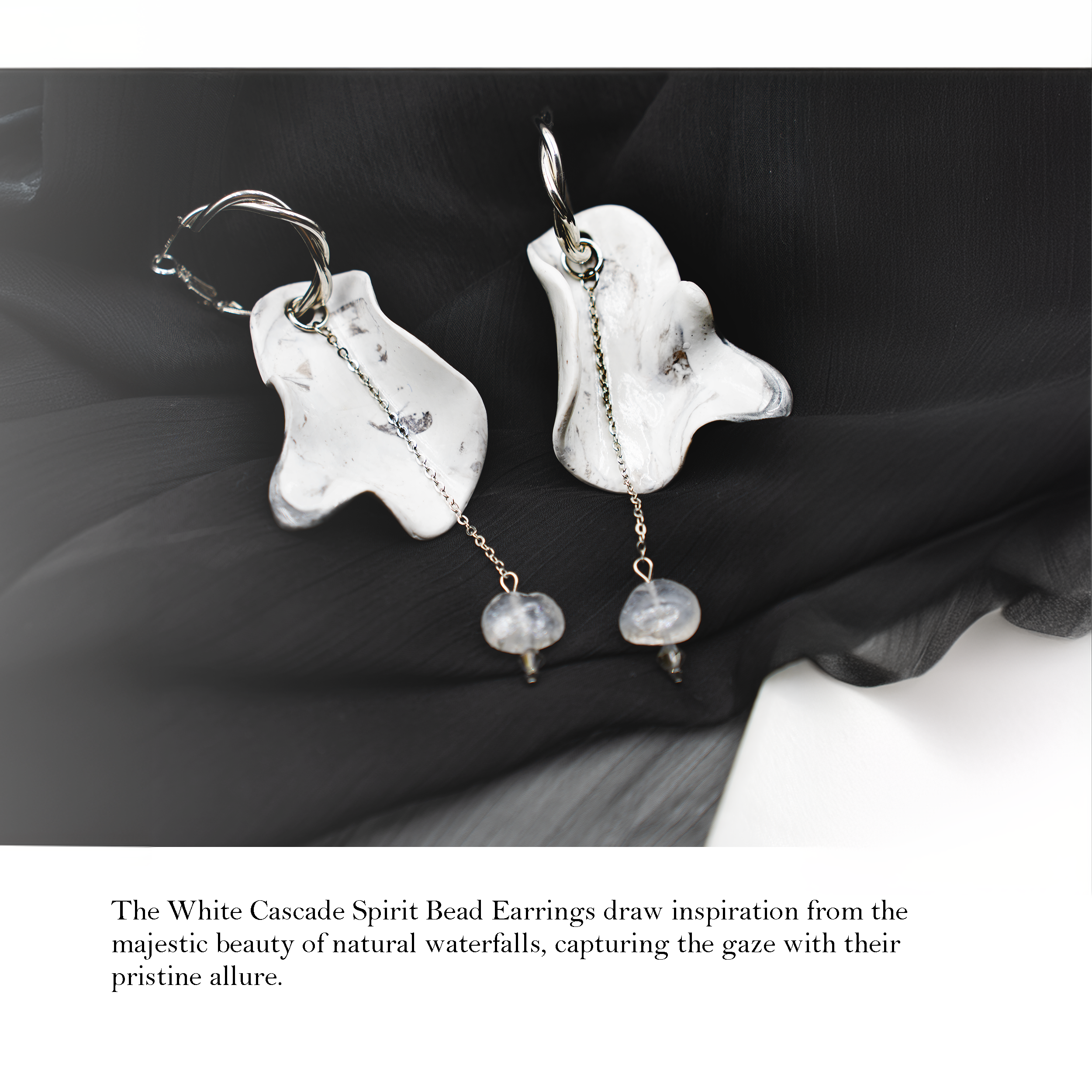 Les boucles d'oreilles White Cascade Spirit Bead s'inspirent de la beauté majestueuse des chutes d'eau naturelles, captivant le regard avec leur allure immaculée.